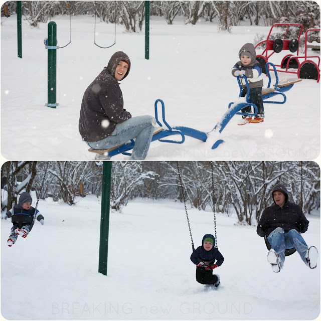 My little dare-devils tried to play on the slide and climb the icy equipment until we distracted them with the deep snow and attempting to build a snowman. At one point Desmond started crawling around in the snow and laughing hysterically